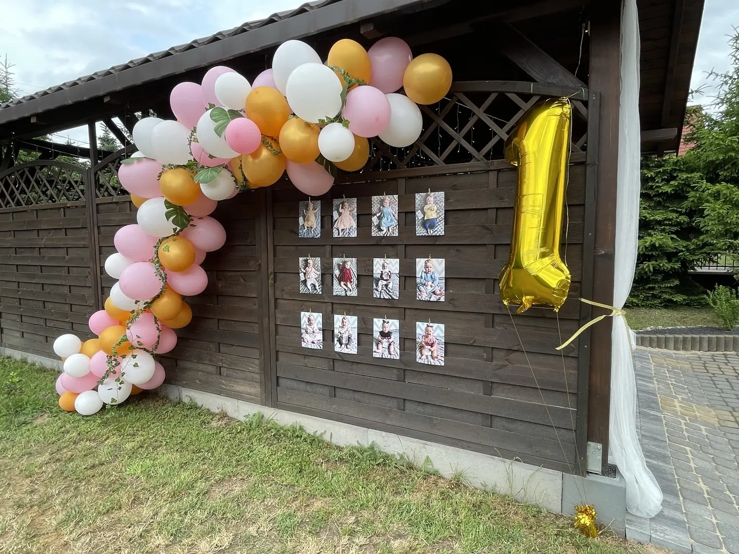 To wyjątkowa dla nas realizacja, dlatego że była jedną z pierwszych, gdy nasza działalność była jeszcze w powijakach, toteż chcieliśmy ją tu wyróżnić. A klientką tej realizacji była Pola, która skończyła swój pierwszy roczek. Miejsce specyficzne - wiata garażowa była ciekawym wyzwaniem, ale jak możecie zobaczyć, nie sprawiło większego problemu naszej ekipie. To dowód, że lokalizacja nie jest przeszkodą, a wręcz przeciwnie - cieszymy się, że możemy tak nieoczywiste miejsca zmieniać nie do poznania i pomóc zaskoczyć gości przyjęcia. Zarówno balony jak i wyposażenie stołu - świeczniki i podtalerze możecie Państwo zamówić w naszej wypożyczalni. Wszelakie dodatki jak napisy czy inne unikalne dekoracje ustalamy indywidualnie z klientem.